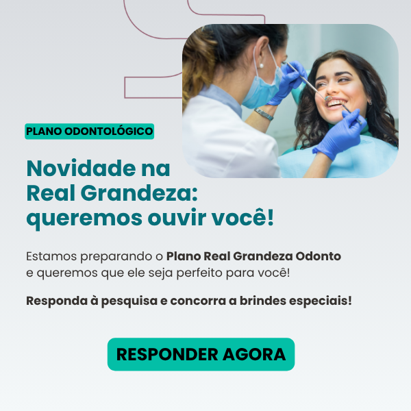 A Real Grandeza está desenvolvendo um novo benefício pensado para você e sua família: o Plano Real Grandeza Odonto. E a sua opinião é essencial para construir uma cobertura que realmente atenda às suas necessidades