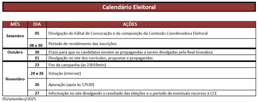- Leia aqui o Regulamento Eleitoral, documento aprovado pelo Conselho Deliberativo em 25/08/2025;